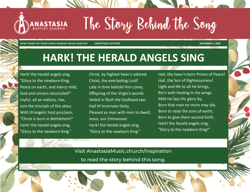 As you sing “Hark! the Herald Angels Sing” during the Christmas season, be sure to truly listen to what you’re singing. Relish the good news that Jesus came and made his home with humanity. Give thanks for the sacrifice He made that gives us the opportunity to be born again. And join your voice with the multitude throughout the last 200 years who have joyfully proclaimed, “Glory to the newborn King!”