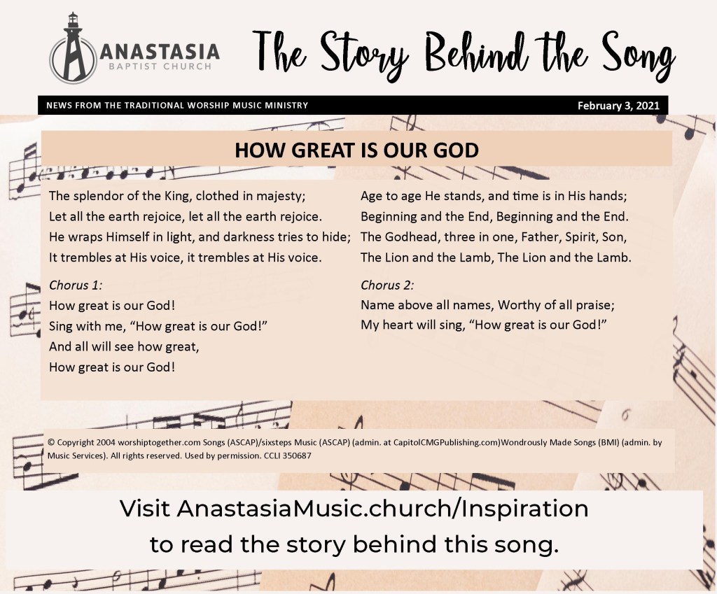 But “How Great Is Our God” is not just a song for trained musicians on stage to perform. It has become a staple in many congregations today. (Since its release in 2004, it has been published in ten hymnals and has consistently appeared in the top 20 of CCLI’s compilation of the most used songs. The most recent listing has it at #18 as of January 2021.)